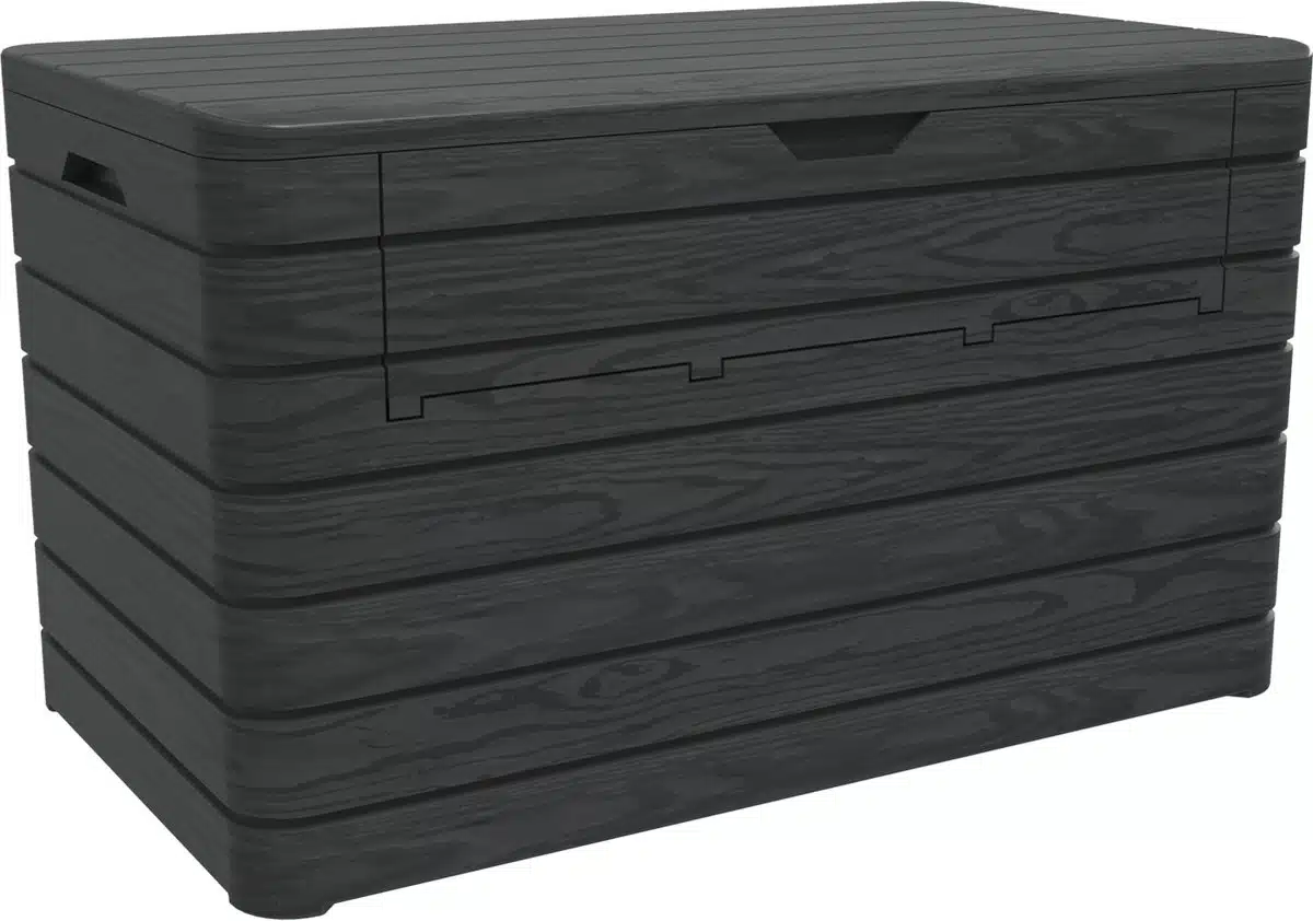 Toomax Dolomiti opbergbox 970 liter – antraciet De Toomax Dolomiti opbergbox is de perfecte oplossing voor het opbergen van kussens, tuinaccessoires en andere spullen in je tuin of op je terras. Deze stijlvolle en functionele opbergbox biedt een combinatie van gebruiksgemak, duurzaamheid en een aantrekkelijk ontwerp. Door het grote volume van 970 liter is er genoeg plek voor het opbergen van bijvoorbeeld tuinkussens of verschillende soorten tuingereedschap. De opbergbox beschikt over een hangslotvoorziening zodat je de box volledig kan afsluiten. (hangslot niet meegeleverd).