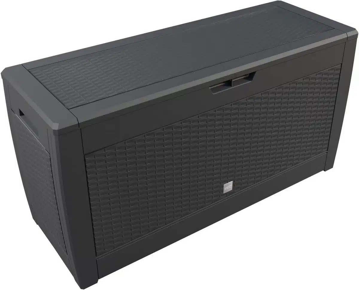 Deze antraciet opbergoplossing zonder merk is ontworpen voor gebruik buitenshuis. De ruime opbergbox combineert een strakke uitstraling met functionele mogelijkheden. Tuingereedschap, kussens en accessoires vinden er eenvoudig een vaste plaats. Dankzij de donkere kleur past de kast moeiteloos bij diverse tuinstijlen.