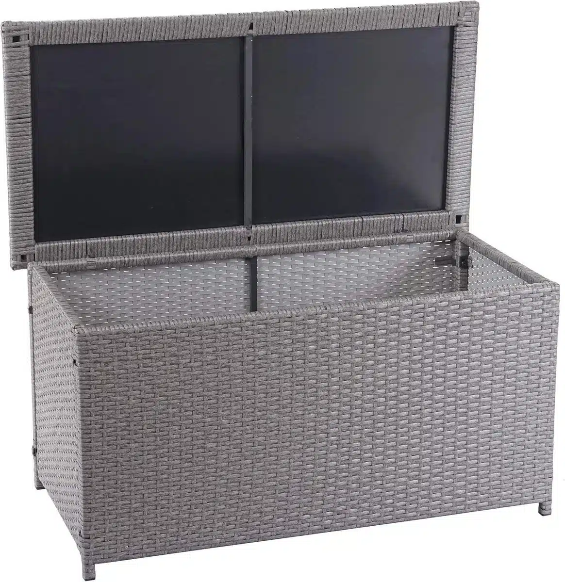 Het materiaal is bestand tegen UV en vocht waardoor de kleur lang behouden blijft en scheuren worden beperkt. Het lichte gewicht in combinatie met een stevige basis maakt verplaatsen makkelijk. De kist vraagt weinig onderhoud en is ideaal voor seizoensopslag van tuintextiel en kinderspeelgoed.