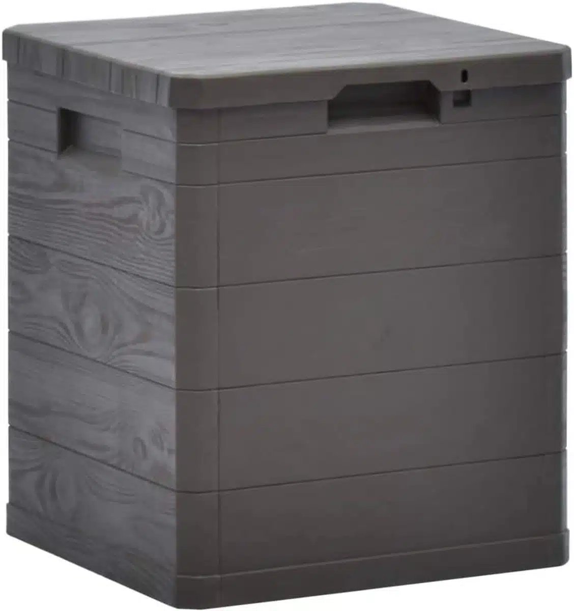 Deze ruime tuinkist is ideaal voor het opbergen van kussens en speelgoed. Waterdicht ontwerp houdt spullen droog tijdens regenbuien. Het neutrale bruine uiterlijk past moeiteloos bij zowel klassieke als moderne tuinen. Doordat de kist merkloos is blijft de aandacht bij uw tuininrichting.
