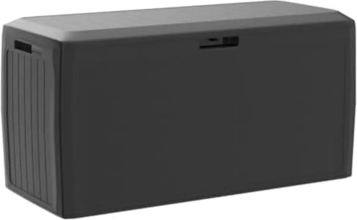 Het materiaal is stevig en onderhoudsvriendelijk, wat reiniging eenvoudig maakt met een doek of een zachte borstel. De robuuste opbouw zorgt voor duurzame bescherming tegen weersinvloeden, zonder dat de box zwaar of onhandig wordt. Een strak antraciet uiterlijk geeft een moderne uitstraling die zich makkelijk laat combineren met verschillende tuinstijlen.