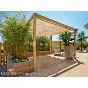 Ik ben zeer tevreden met de Nesling Coolfit harmonica schaduwdoek in zandkleur! Het formaat van 2 x 3 meter is perfect voor mijn tuin. Het doek biedt een fijne schaduw en ziet er bovendien stijlvol uit. De kwaliteit is geweldig en het is eenvoudig te bevestigen. Ideaal voor een gezellige dag buiten! Een echte aanwinst voor elke buitenruimte!