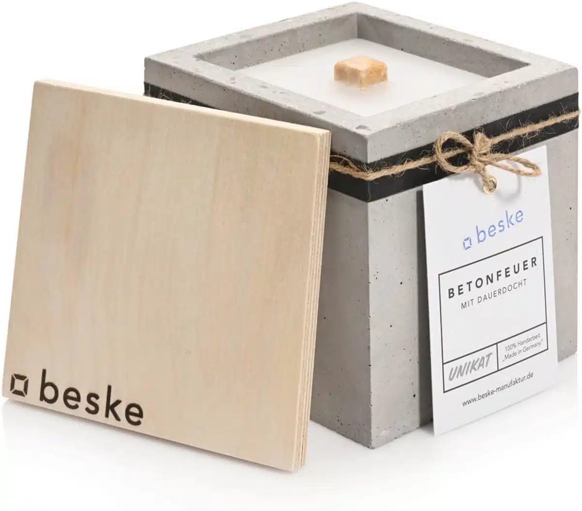 Ontdek het unieke betonvuur, een combinatie van een stijlvolle betonnen schaal en een permanente lont voor een langdurige brandervaring. Perfect voor buitengebruik, recycleert restwas van kaarsen en creรซert een gezellige sfeer in uw tuin of op uw terras. Dit betonvuur is gemakkelijk bij te vullen met kaarsresten of wasplakken, zodat u eindeloos kunt genieten van vuur zonder zorgen. Elk stuk is handgemaakt in Keulen met oog voor kwaliteit en detail. Perfect als cadeau voor buitenliefhebbers die houden van een moderne, duurzame uitstraling.