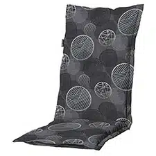 Zoek je een tuinstoelkussen voor stoelen met een hoge rug? Dit kussen is er prima voor geschikt.Het dessin van het kussen valt in de kleurcategorie: grijsDit tuinstoelkussen heeft een totale afmeting van ca. 122x49cm. Het zitvlak is ca. 49x49cm groot.Dit kussen heeft een dikte van ca. 7cm.De bevestiging met band en touwtjes zorgt ervoor dat het kussen goed op de stoel blijft liggen.Dit hoge rug kussen is van het merk Madison kussens
