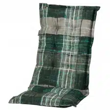 Ben je op zoek naar een modern tuinkussen voor een verstelbare stoel?Dit universal hoge rug kussen is groen van kleur.De grootte van het zitgedeelte is ca. 46x49cm en de totale afmeting is ca. 119x46cm.Dit tuinstoelkussen is ca. 7cm dik.De bevestiging met een band en touwtjes zorgt ervoor dat het kussen goed op de stoel blijft liggen.Dit kussen is van het merk Madison kussens