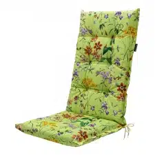Met het Tuinkussen hoge rug – Milly green (waterafstotend) zit je lekker comfortabel in jouw tuinstoel.Het dessin van het kussen is multi van kleur.Het stoelkussen is in totaal 118x47cm groot en heeft een zitgedeelte van ca. 45x47cm.Zitting en rug van het kussen hebben een dikte van ca. 7cm.De bevestiging met band en touwtjes zorgt ervoor dat het kussen goed op de stoel blijft liggen.Het kussen is van het merk Madison kussens