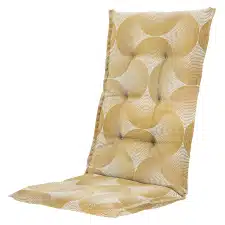 Met het Tuinkussen hoge rug – Napels rondo mustard (waterafstotend) zit je lekker comfortabel in jouw tuinstoel.Dit verstelbare stoelkussen heeft een afmeting van ca. 118x47cm. Het zitgedeelte is ca. 45x47cm.Dit kussen heeft een dikte van ca. 7cm.Je kunt het tuinstoelkussen gemakkelijk vastmaken met de band en touwtjes van het kussen.Dit kussen is van het merk Madison kussens