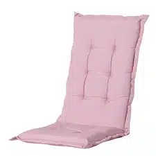 Tijd voor nieuwe kussens voor jouw verstelbare tuinstoelen? Kies voor een modern kussenmodel met biezen.Het tuinkussen is overwegend roze van kleur.Tuinkussen hoge rug – Panama soft pink heeft een afmeting van ca. 122x49cm, waarbij de zitting ca. 49x49cm is.Zitting en rug van het kussen hebben een dikte van ca. 7cm.Je kunt dit kussen vastzetten aan de stoel middels band en touwtjes.Het merk van het kussen is Madison kussens