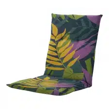 Dit mooie tuinkussen is passend voor dining stoelen van hout, staal, aluminium of kunststof.Het tuinkussen is overwegend multi van kleur.Dit lage rug kussen is ca. 107x49cm groot en heeft een zitoppervlak van ca. 47x49cm.Dit tuinkussen is ca. 6cm dik.Je kunt het tuinstoelkussen gemakkelijk vastmaken met de band en touwtjes van het kussen.Merk lage rug kussen: Madison kussens.