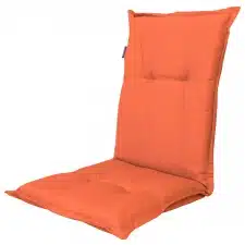 Is het tijd voor nieuwe kussens voor jouw tuinstoelen? Dit prachtige kussen is passend voor stoelen met een lage rug.De kussenkleur is oranje.Het zitgedeelte van het kussen is ca. 46x46cm groot en de totale afmeting is ca. 106x46cm.Zitgedeelte en ruggedeelte hebben een dikte van ca. 6cm.De bevestiging met band en touwtjes zorgt ervoor dat het kussen goed op de stoel blijft liggen.Dit lage rug kussen komt uit de collectie van Madison kussens