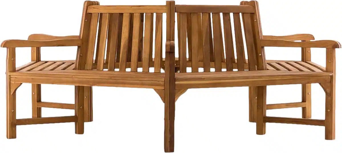 Het ontwerp is ingetogen en tijdloos zodat de bank moeitelijk aansluit bij verschillende buitenstijlen. De warme houttinten zorgen voor een natuurlijke uitstraling die zowel bij moderne als klassieke omgevingen past. Door de robuuste constructie voelt de zitting stevig aan en blijft de boombank stabiel bij intensief gebruik.