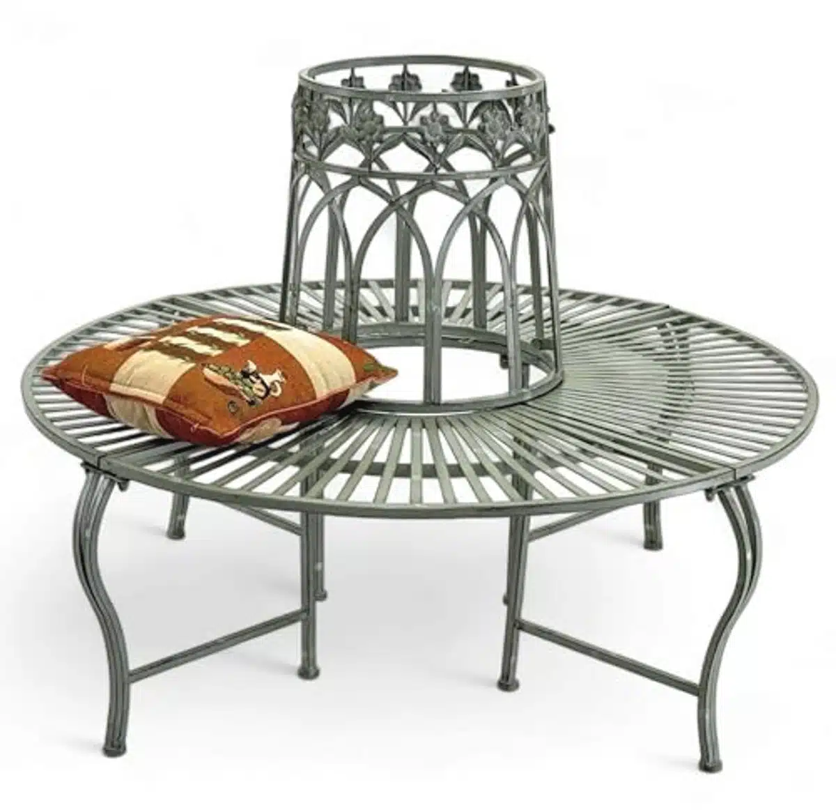 Deze ronde metalen tuinbank met een diameter van ร 120 cm combineert eenvoud en functionaliteit in een tijdloos ontwerp. De antiek grijze afwerking geeft het meubel een subtiele uitstraling die zich moeiteloos voegt naar verschillende buitenstijlen. Het merkloze karakter maakt deze bank universeel inzetbaar en geschikt voor wie zoekt naar neutrale tuininrichting.