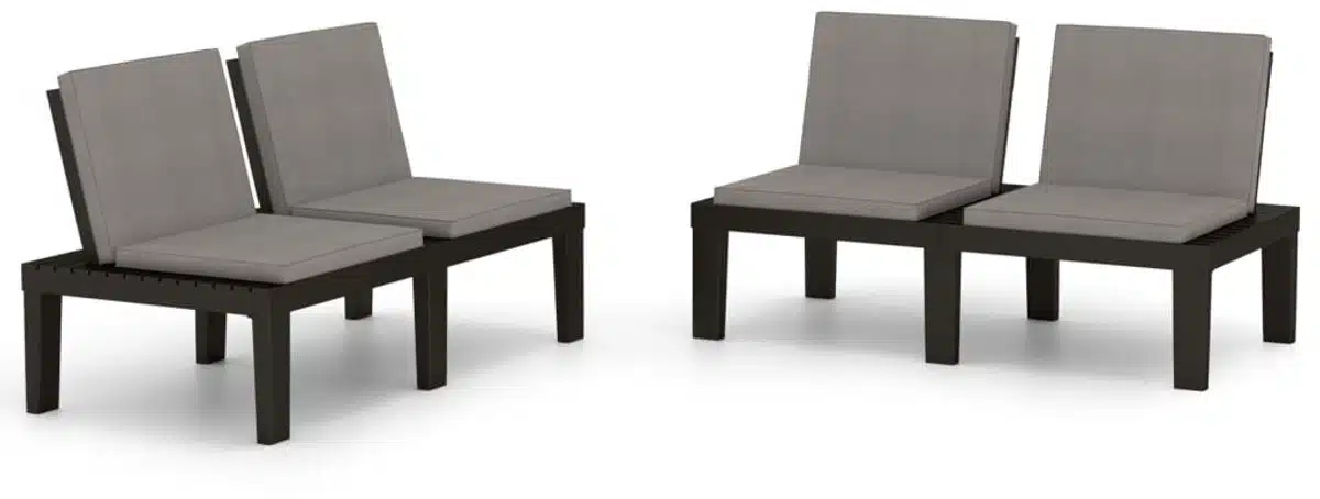 Het compacte formaat maakt deze set uitermate geschikt voor kleinere buitenruimtes. Plaats de banken langs een muur naast een tafel of tegenover elkaar om een knusse zithoek te creรซren. De neutrale grijze kleur vormt een rustige basis en laat mogelijkheden open voor kleuraccenten met kussens planten of accessoires.