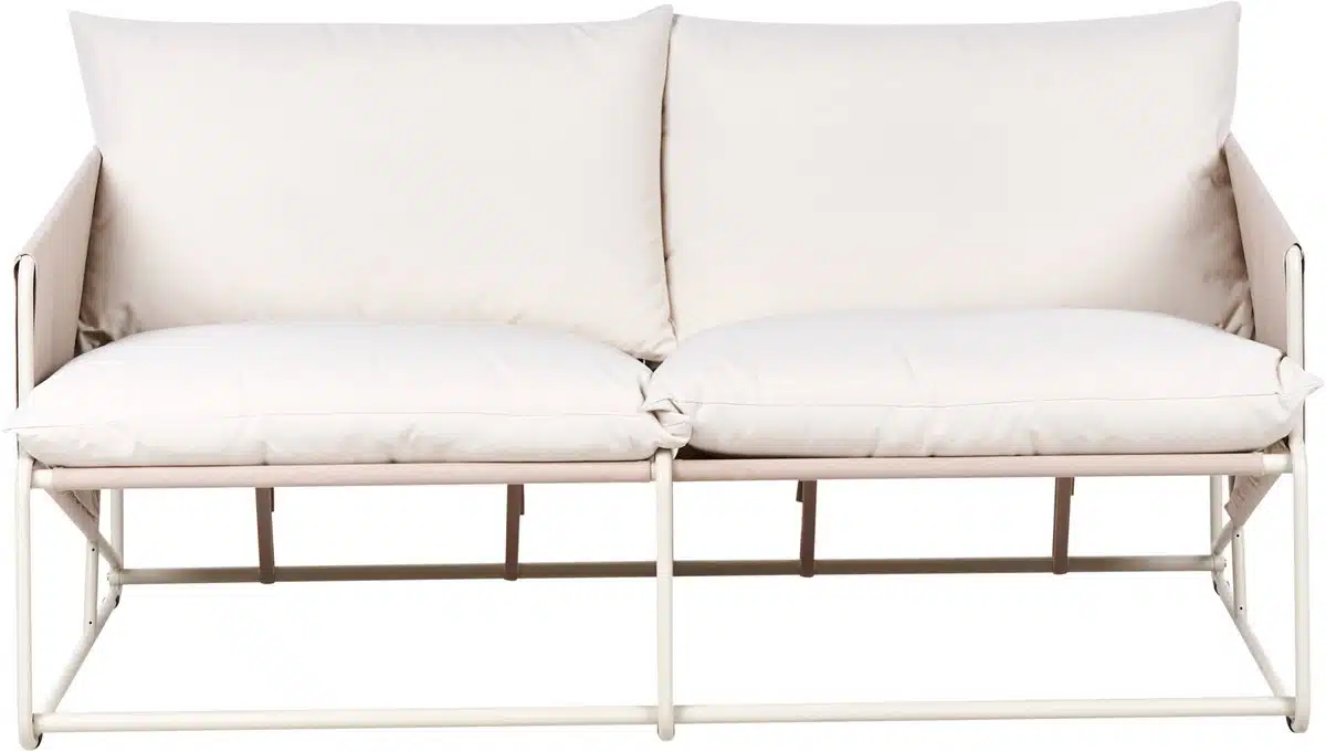 Het stalen frame biedt een solide basis en draagt bij aan de lange levensduur van het meubel. De kussens voelen prettig aan en ondersteunen tijdens lange gesprekken of rustige momenten met een boek. Onderhoud is eenvoudig zodat u weinig tijd kwijt bent aan schoonmaken en meer tijd overhoudt om buiten te genieten. De constructie is gericht op stabiliteit en aangenaam zitcomfort.