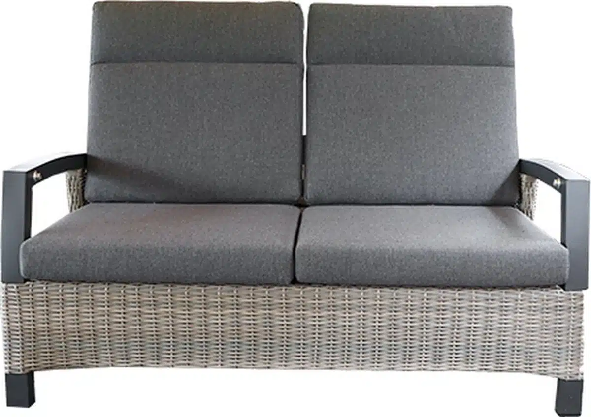 Het frame is stevig uitgevoerd en voelt solide aan zonder zwaar of log te lijken. Het zitvlak is ergonomisch vormgegeven met zachte kussens die voldoende ondersteuning bieden tijdens lange gesprekken en rustige leesmomenten. De bekleding en vulling zijn gekozen met aandacht voor buitengebruik zodat ze bestand zijn tegen veranderingen in weer en temperatuur.