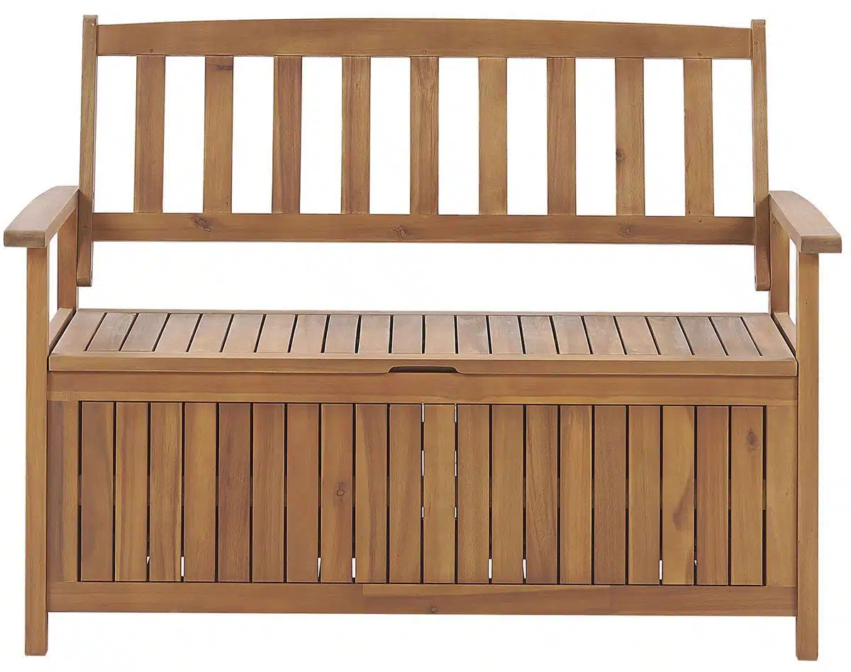 Het natuurlijke acaciahout krijgt op den duur een mooie patina, waardoor elk exemplaar unieke nuances krijgt. Een eenvoudige behandeling met olie of speciale houtverzorging verlengt de levensduur en benadrukt de warme tinten. Dankzij het tijdloze silhouet is de bank ook geschikt voor openbare plekken, vakantiehuizen en horeca gelegenheden. Een stevige montage en duidelijke instructies maken plaatsing snel en probleemloos.