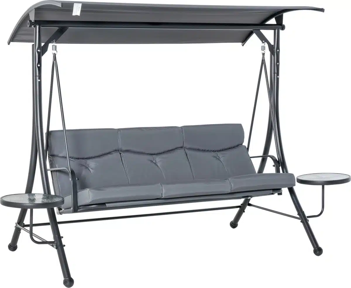 Geniet van ontspanning en samenzijn met de Outsunny Hollywoodschommel voor drie personen. Dit model biedt royaal zitcomfort dankzij soepel vormgegeven kussens en een ruime zitpartij die iedereen uitnodigt om te ontspannen. Het stalen frame geeft extra stevigheid zodat de bank jarenlang dienst kan doen en tegelijk oogt de afwerking verfijnd en modern. De zachte grijstint werkt als rustige basis en laat bloemen en groen in de tuin extra tot hun recht komen.