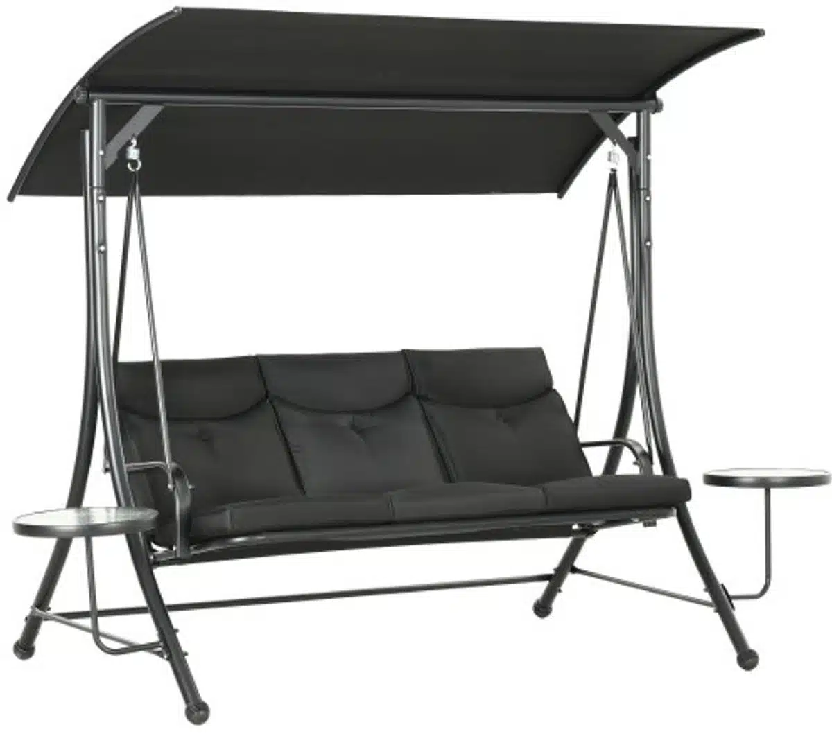 Ontspan en geniet in stijl met deze elegante verandaschommel met salontafel. Het tijdloze zwarte ontwerp past moeiteloos bij moderne terrassen en klassieke tuinen. De ruime 3-zits constructie biedt plaats voor familie en vrienden terwijl de verstelbare zonnekap beschermt tegen fel zonlicht.