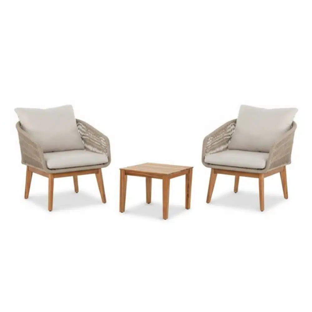 Bella lounge balkonset 2 personen | touw + hardhout | zand | 3-delig