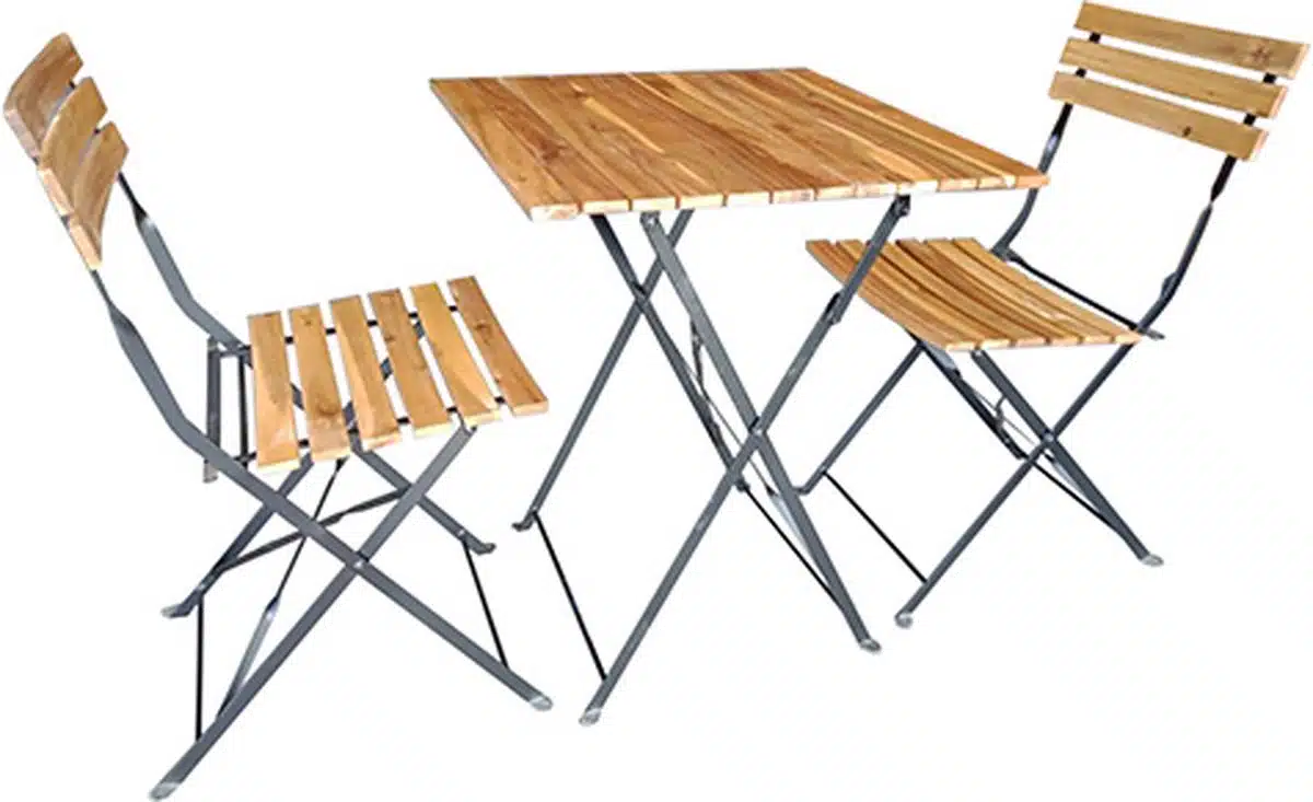 De set is licht genoeg om gemakkelijk te verplaatsen. Opbergen neemt weinig ruimte in omdat de stoelen inklapbaar zijn. Dit maakt de bistroset bijzonder geschikt voor seizoensopslag. Gebruik de set voor ontbijt, een lunch of een ontspannen avond. Het klassieke Franse design nodigt uit tot gezellige momenten samen.