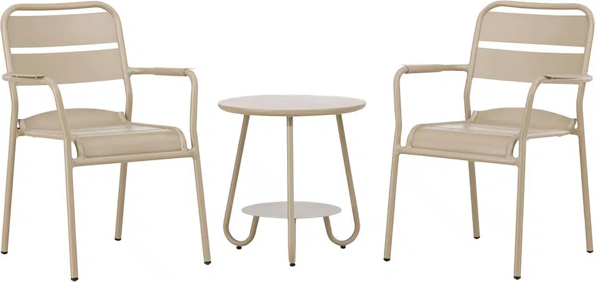 De Nest Outdoor Caro bistroset beige 3-delig van aluminium is een mooie aanvulling op mijn balkon. De stoelen zitten prettig en het ontwerp is compact en stijlvol. Het materiaal voelt stevig aan en is makkelijk schoon te houden.