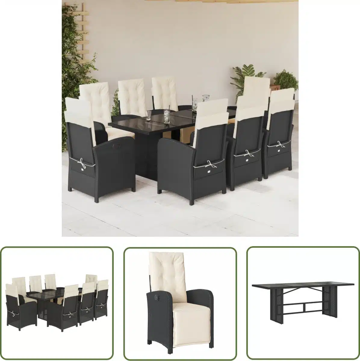 De afwerking in zwart zorgt voor een strakke look en maakt de set onderhoudsvriendelijk. Vuil en weersinvloeden zijn minder zichtbaar waardoor de set langer mooi blijft zonder intensief onderhoud. Het gebruikte materiaal is weerbestendig en bestand tegen veelvoorkomende buitenomstandigheden.