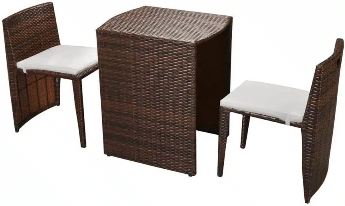 Perfect bistrosetje voor ons balkon of patio. Het heeft een stevig frame en comfortabele kussens, en is makkelijk schoon te maken. Stijlvol ontwerp en perfect formaat voor twee personen, zeker een aanrader!