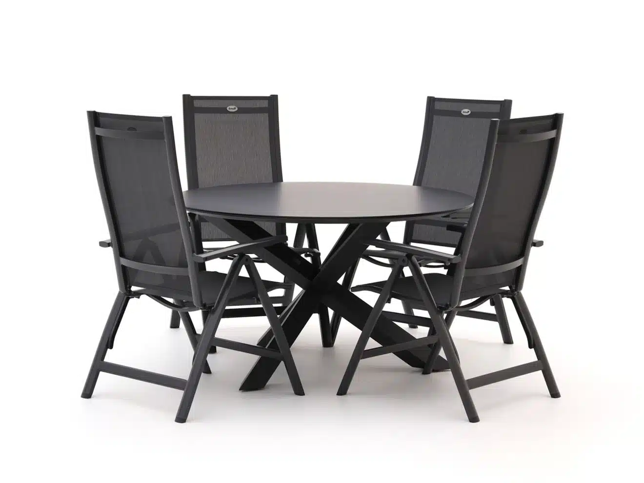 Hartman Troy/Ferrone ronde dining tuinset met 4 zitplaatsen verstelbaar De Hartman Troy/Ferrone dining tuinset is een ronde 4 persoons set van aluminium, ideaal als je compact wilt zitten en toch lekker de ruimte wilt hebben aan tafel. De rugleuningen zijn verstelbaar in 7 standen, dus je schuift makkelijk van actief eten naar relaxed natafelen. Door de ronde tafel met een diameter van 130 centimeter kun je elkaar goed aankijken, zonder dat de set veel plek inneemt op je terras of balkon. Het glazen tafelblad heeft een matte keramiek look, wat er rustig uitziet én minder snel vlekken laat zien. Tip: voeg losse kussens toe voor nog wat extra zitcomfort tijdens lange avonden buiten. Eigenschappen * Verstelbare rugleuningen: Je zet de rugleuning in 7 standen, van rechtop eten tot lekker achterover na de barbecue. * Lichtgewicht aluminium frame: Door het aluminium schuif je de stoelen en tafel makkelijk opzij als je je terras anders wilt indelen. * Glazen tafelblad met keramiek look: Het matte blad oogt rustig en daarop zie je vingerafdrukken en kringen minder snel dan op hoogglans glas. * Compacte ronde tafel van 130 cm: Je hebt genoeg ruimte om met 4 personen te eten, terwijl de set niet je hele terras in beslag neemt. * Stoelen voorgemonteerd: Je hoeft de stoelen alleen uit te klappen, zo kun je bijna direct aanschuiven.