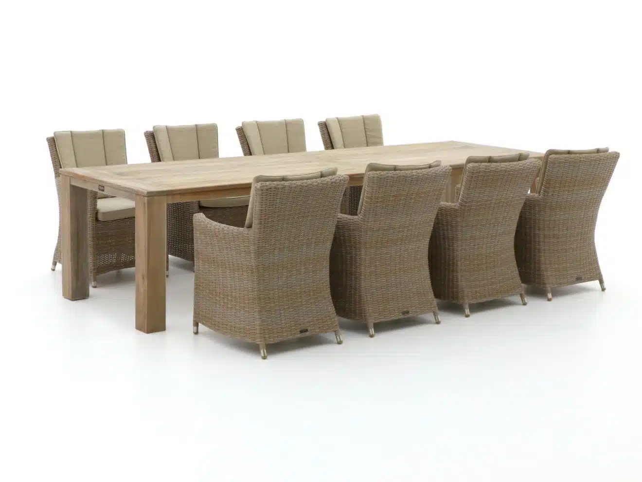 De Intenso Adriano ROUGH X 320 cm dining tuinset in bruin biedt een perfecte combinatie van uitstraling en stevigheid. Deze complete 9 delige set bestaat uit een royale eettafel van 320 cm en acht comfortabele stoelen, waardoor er genoeg plek is voor familie en vrienden. Het ontwerp is modern en toch tijdloos, zodat de set in verschillende tuinstijlen goed tot zijn recht komt. De constructie gebruikt duurzame materialen die bestand zijn tegen wisselende weersomstandigheden, waardoor de set jarenlang meegaat. Dankzij de verzorgde afwerking voelen de zitplaatsen prettig aan en bieden ze aangenaam zitcomfort tijdens lange etentjes en gezellige avonden. Het onderhoud is eenvoudig, waardoor je meer tijd overhoudt om van het buitenleven te genieten. De warme bruine tint geeft een natuurlijke uitstraling en zorgt voor een uitnodigende sfeer op het terras of in de tuin. Door de brede tafel blijft er voldoende ruimte over voor gerechten, glazen en decoratie tijdens diners en borrels. Of je nu een zomerse barbecue organiseert of een rustig ontbijt buiten wilt, deze tuinset is veelzijdig inzetbaar. De Intenso naam staat voor kwaliteit en doordacht design, waardoor dit model een slimme keuze is voor wie comfort en stijl wil combineren. Bestellen gaat snel en met de laagste prijsgarantie weet je dat je profiteert van een scherpe aanbieding. Kies voor een complete en duurzame oplossing voor je buitenruimte en maak van iedere bijeenkomst een aangename ervaring met deze fraaie 9 delige dining set van Intenso. De kussens zijn weerbestendig en kunnen simpel worden gereinigd, zodat kleur en vorm behouden blijven. Montage is intuïtief en kan door twee personen in korte tijd worden uitgevoerd. Dankzij slimme afmetingen past de set ook op grotere balkons en verandas. Met uitstekende klantenservice en aantrekkelijke levertijden is deze tuinset een duurzame investering in sfeer en comfort. Bestel vandaag en geniet direct…… Lees alle informatie bij onze partner!