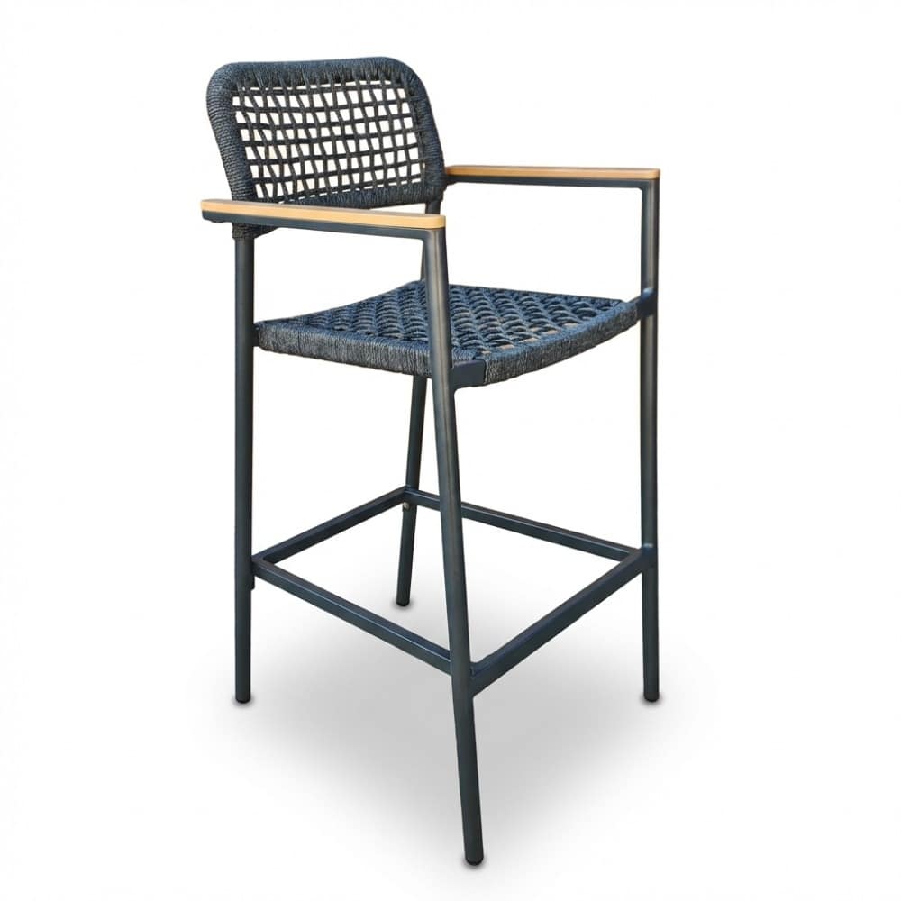 De Denver dining barstoel brengt een eigentijdse sfeer naar elke buitenruimte. Het minimalistische silhouet in antraciet past moeiteloos bij verschillende tuinstijlen. Dankzij het subtiele contrast tussen de warme touwtextuur en het strakke aluminium ontstaat een uitnodigende uitstraling die zowel modern als tijdloos oogt.