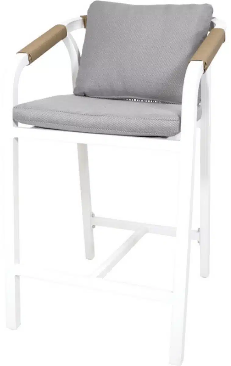 Weerbestendige materialen maken de stoelen geschikt voor uiteenlopende weersomstandigheden en zorgen dat ze lang mooi blijven. Het onderhoud is beperkt tot afnemen met een vochtige doek zodat u meer tijd overhoudt om te genieten van buitenleven. De Rimini barstoel is ontworpen met eenvoudige lijnen en subtiele details zodat het geheel een moderne maar ingetogen uitstraling heeft. Een verhoogde zithoogte geeft een speels en sociaal element aan uw buitenruimte en nodigt uit tot ontspannen gesprekken.