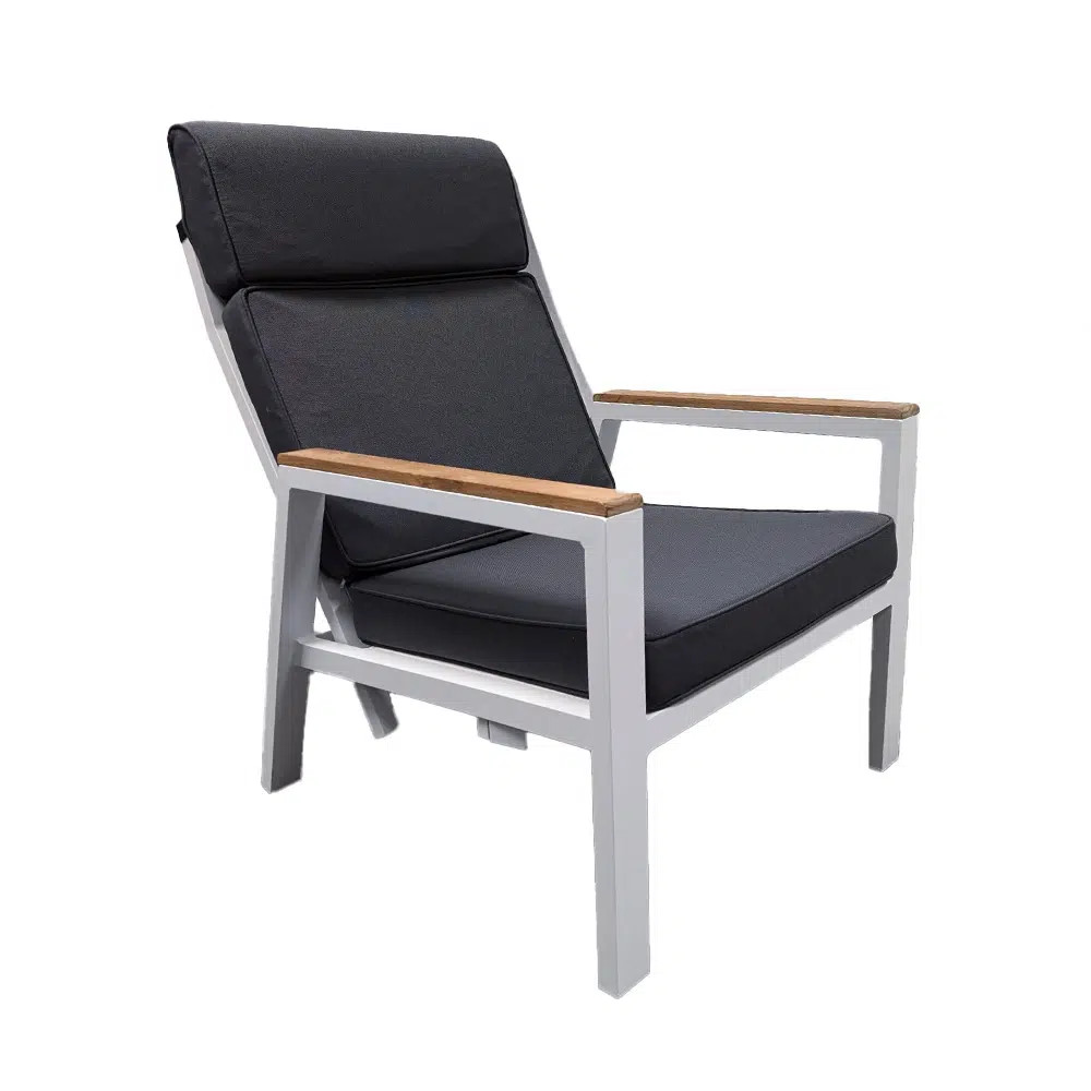 Stefano Relax Tuinstoel Verstelbaar – Teak/Wit Trestino is de perfecte mix van design en functionaliteit, uitgevoerd in wit en vervaardigd uit aluminium. Brengt sfeer en luxe naar buitenruimtes met oog voor detail. De afmetingen zijn ca. 83 × 71 × 98 cm (L × B × H), ideaal afgestemd op praktisch buitengebruik.