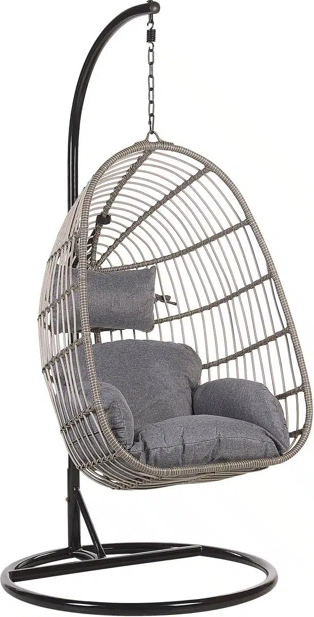 De BELIANI CASOLI hangstoel in stijlvol grijs is ontworpen voor ontspannen momenten in de buitenlucht. Met een elegante vormgeving en solide constructie voegt dit model direct sfeer toe aan terras, balkon of tuin. Het ruime zitgedeelte geeft voldoende bewegingsvrijheid, waardoor je comfortabel kunt wegdromen tijdens een boek of een zomerse siรซsta.
