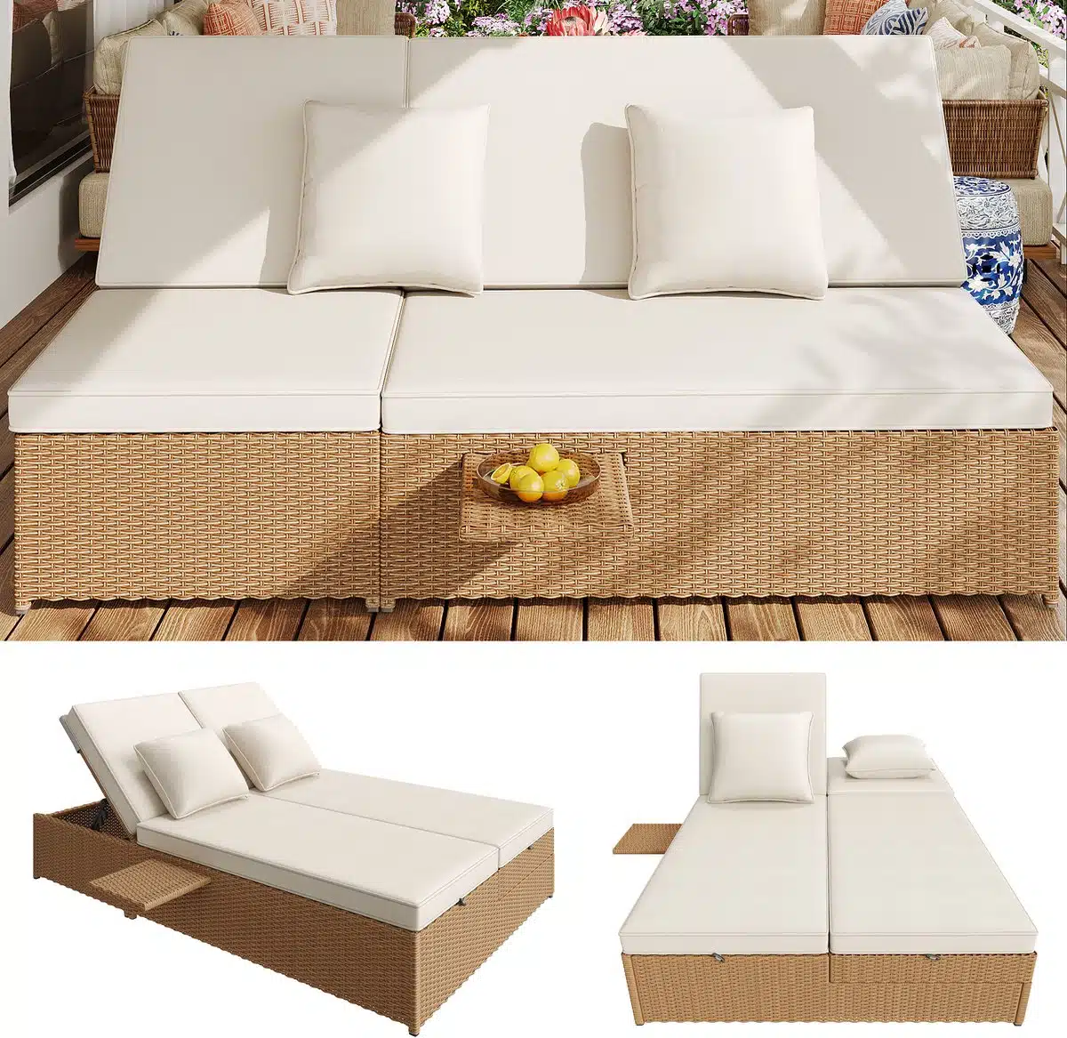 Of u nu wilt zonnebaden lezen of samen ontspannen met een drankje het dubbele rieten ligbed biedt comfortabele ondersteuning en subtiele stijl. Een duurzame investering in buitencomfort die gemakkelijk te onderhouden is en jarenlang plezier brengt.