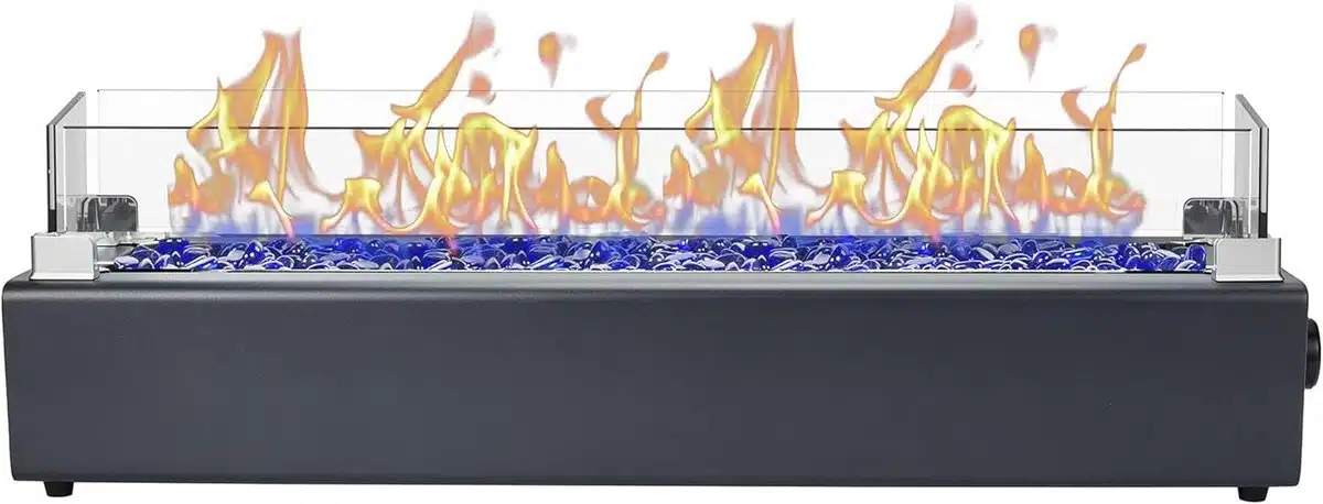 Geniet van gezellige avonden buiten met deze 28 inch tafelblad vuurplaats op propaan. Deze draagbare open haard produceert een warmte van 40.000 BTU en is perfect voor op de patio of in de tuin. De rechthoekige vuurschaal wordt geleverd inclusief een beschermend windglas schild om de vlam stabiel te houden, en decoratieve glazen rotsen voor een luxe uitstraling. De kleur is stijlvol koolstofgrijs. Belangrijk: Lees voor gebruik altijd zorgvuldig de handleiding door. Controleer de inhoud op eventuele ontbrekende onderdelen of schade. Neem bij technische vragen of problemen contact op met de klantenservice.