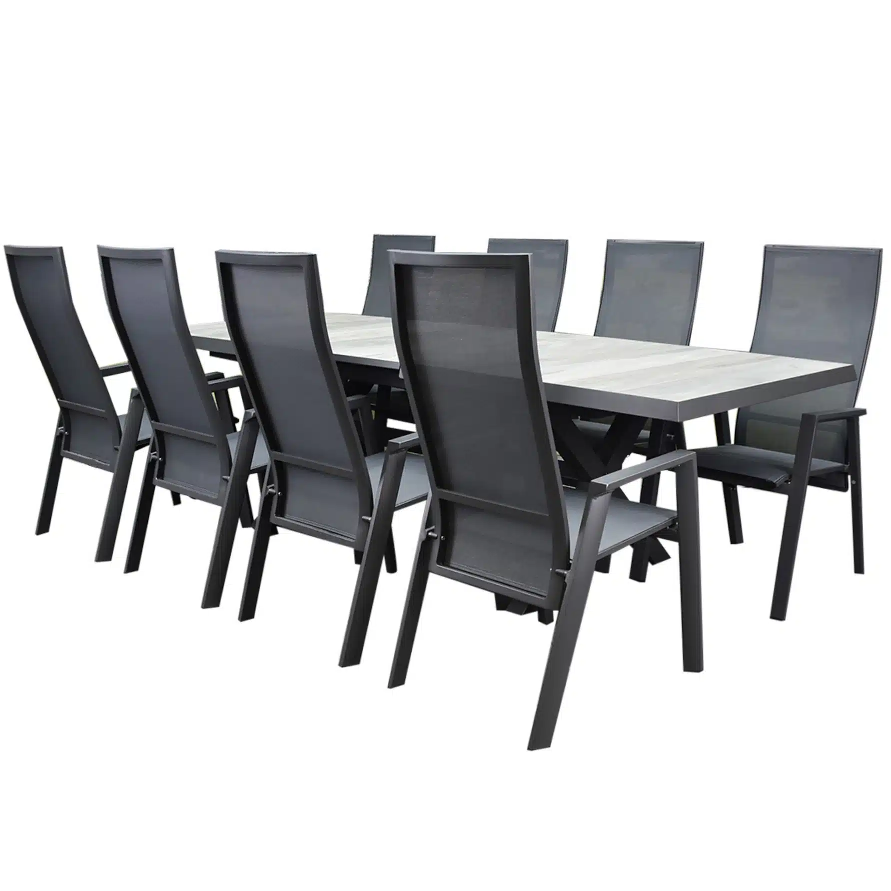 Nancy New Delhi dining tuinset uitschuifbaar 204-264x103xH74,5 cm 9 delig aluminium