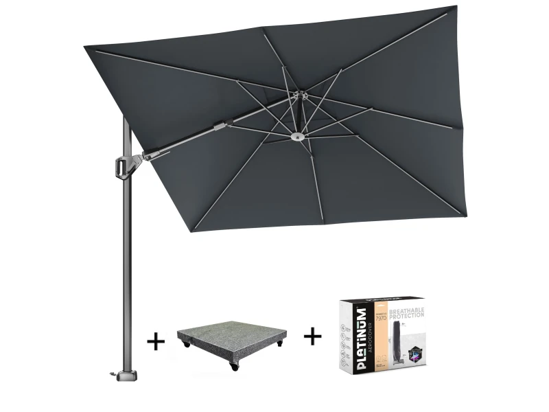 Zweefparasol Challenger T1 premium 4×3 meter Vervaagd Zwart zonwering Platinum – Platinum