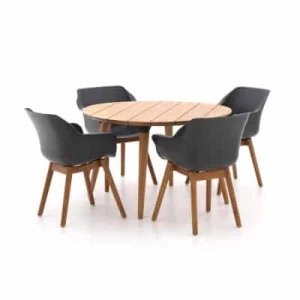 Deze tuinset heeft een ronde tuintafel met een diameter van 120 centimeter. De tafel neemt dus niet overdreven veel ruimte in beslag, maar biedt wel voldoende ruimte voor maar liefst 4 stoelen. Deze 4 stoelen staan op een fraaie wijze om de tafel heen, waarbij er tussen de stoelen nog voldoende ruimte is. Met dank aan de vier tafelpoten staat de tuintafel bovendien onwijs stevig; je kunt dus met veel plezier aan deze tafel plaatsnemen.